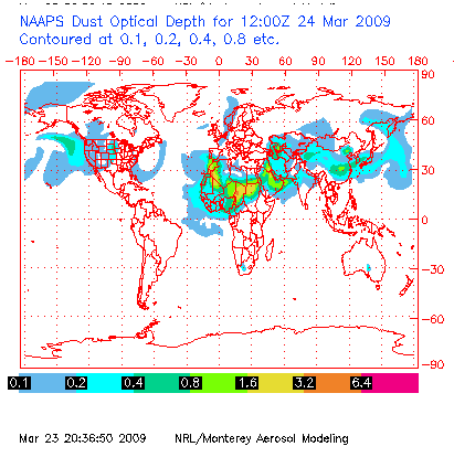 ARL can project where air pollution will move based on meteorological conditions. NOAA's National Weather Service National Center for Environmental Prediction re-analyzed global meteorological conditions and plotted the dust movement to verify the computer models.